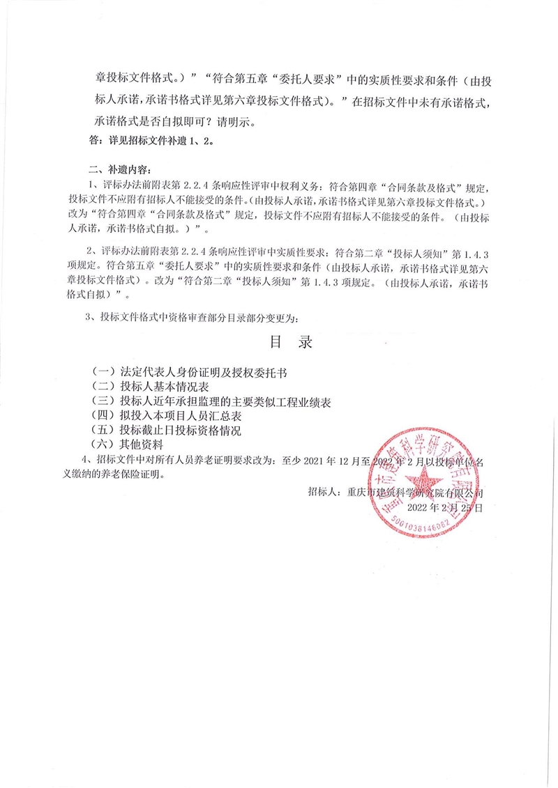 4、招標文件中對所有人員養(yǎng)老證明要求改為:至少2021年12月至2022年2月以投標單位名義繳納的養(yǎng)老保險證明。