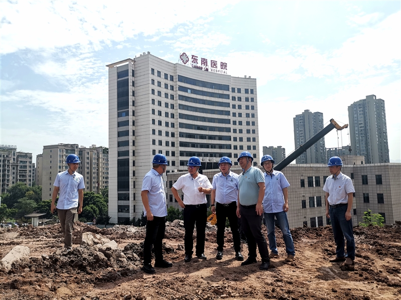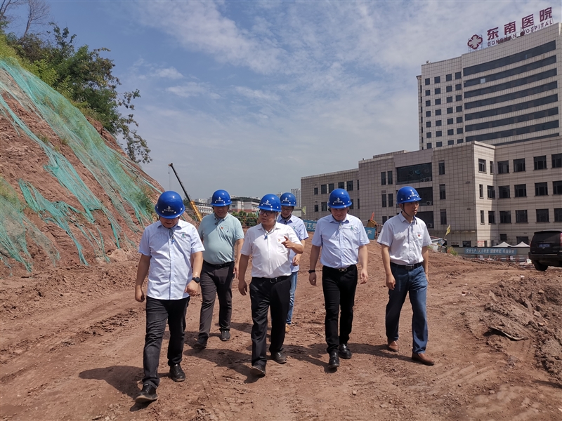 慰問結(jié)束后,冉龍彬董事長一行深入項目現(xiàn)場,詳細了解項目推進情況、存在的困難和下一步工作計劃,就進一步提升項目質(zhì)量、切實抓好安全生產(chǎn)作出重要部署。他強調(diào),一是要充分發(fā)揮代建引領(lǐng)作用,壓實各參建主體責(zé)任,強化現(xiàn)場安全管理,尤其要重視近期高溫、雷雨天氣交替對土石方施工的安全風(fēng)險研判,提前謀劃,防范隱患事故發(fā)生;二是要堅持服務(wù)至上理念,科學(xué)管理、主動作為推動項目建設(shè),用工匠精神打造品質(zhì)服務(wù),展現(xiàn)“建科項管”服務(wù)特色;三是要善于識變、勇于求變,強化跨界交流與學(xué)習(xí),實現(xiàn)公司打造高品質(zhì)醫(yī)院建設(shè)項目管理經(jīng)驗的高度集成,將專業(yè)做精、把板塊做強;四是要解放思想,拓寬經(jīng)營思路,以既有項目為依托,整合公司技術(shù)資源,深度挖掘延伸性服務(wù)潛力,為客戶提供全要素服務(wù)。