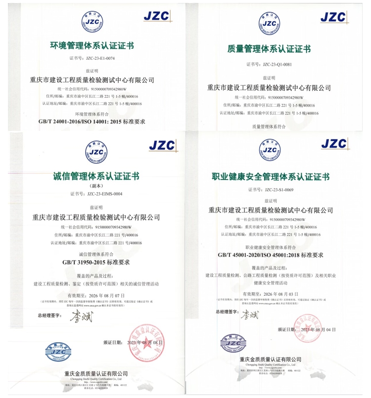 近日,經(jīng)過質(zhì)量、環(huán)境、職業(yè)健康安全、誠信管理體系現(xiàn)場評(píng)審,重慶設(shè)計(jì)集團(tuán)市建科院公司所屬子公司——重慶市建設(shè)工程質(zhì)量檢驗(yàn)測試中心有限公司(簡稱檢測中心)順利通過2023年度ISO資質(zhì)再認(rèn)證評(píng)審。
