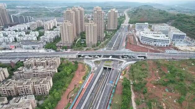 方悅立交工程位于兩江新區(qū)水土新城東南側(cè)、悅復(fù)大道與方正大道交匯處,是水土新城“內(nèi)暢外聯(lián)”重要交通節(jié)點(diǎn)工程。該項(xiàng)目為三層菱形立交,分為方正大道上跨、悅復(fù)大道下穿、中間層渠化信控交叉口,其中方正大道改造長(zhǎng)度為786.99m,悅復(fù)大道改造長(zhǎng)度為789.438m,共設(shè)置一座170.11m跨線橋、一座97.5m地下通道、四條長(zhǎng)度為1.865km的輔道和一座可供行人四象限通行的人行天橋。項(xiàng)目通車后,將極大緩解兩江新區(qū)水土新城思源片區(qū)交通擁堵狀況,方便周邊企事業(yè)單位和群眾出行。