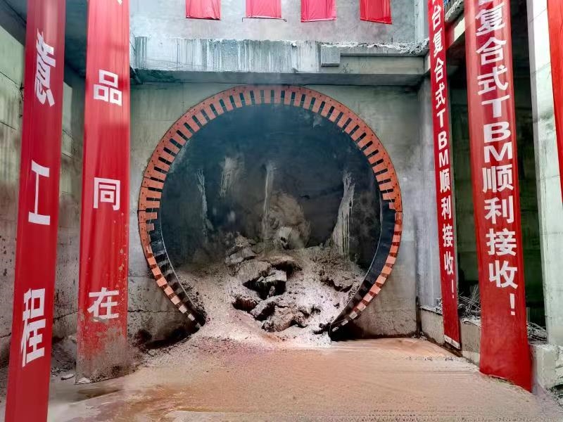 瓦茶區(qū)間為單洞雙線隧道,左線長約1.7km,最大坡度36‰,隧道頂部最大埋深約32m,系該工程首條長距離、大坡度盾構(gòu)隧道。掘進(jìn)路線主要穿越回填土區(qū),隧道上方范圍內(nèi)有多個(gè)U型回填土層集水凹槽,地下水豐富,水壓較高,地質(zhì)條件復(fù)雜,掘進(jìn)過程中易造成管片上浮、錯(cuò)臺、滲漏水、掘進(jìn)效率低等問題。盾構(gòu)施工過程采用了特殊調(diào)配添加劑的預(yù)拌砂漿、在富水區(qū)開孔泄水時(shí)采用雙液漿封水環(huán)和二次補(bǔ)注漿等技術(shù)措施,確保了施工質(zhì)量,實(shí)現(xiàn)了TBM勻速穩(wěn)步掘進(jìn)。同時(shí)借助先進(jìn)的電子監(jiān)測設(shè)備和智慧工地管理系統(tǒng),實(shí)現(xiàn)全施工過程信息化監(jiān)測,切實(shí)保障施工過程安全。市建科院檢測中心作為該工程的第三方檢測方,在盾構(gòu)施工過程中,積極組織人員,全力配合項(xiàng)目進(jìn)度,及時(shí)開展相關(guān)料原材料等檢測工作,及時(shí)出具檢測報(bào)告,確保各項(xiàng)檢測參數(shù)滿足設(shè)計(jì)及規(guī)范要求。