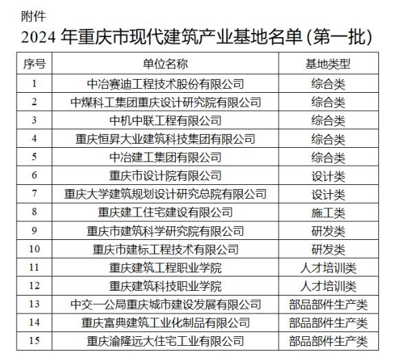 近日,重慶設(shè)計(jì)集團(tuán)所屬子企業(yè)重慶市建筑科學(xué)研究院有限公司(簡(jiǎn)稱“市建科院”)獲批“重慶市現(xiàn)代建筑產(chǎn)業(yè)基地”(研發(fā)類(lèi))。