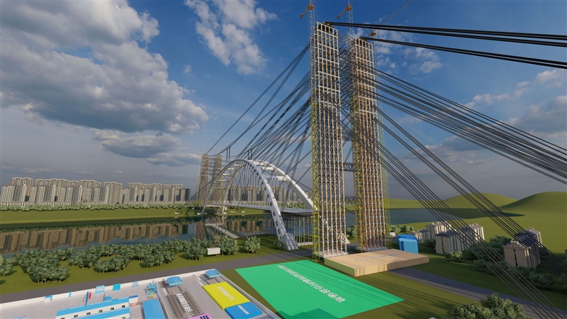 瀘州市藍田過江通道(藍田長江五橋)及連接線工程是《瀘州市跨江通道專項規(guī)劃(2014-2030)》中規(guī)劃的新建8座跨江通道之一,項目包含跨江主橋、兩岸引橋、學院中路升級改造、未來大道延伸線工程等,總投資約35.74億元。其中,主橋凈跨徑為570m鋼箱拱橋、雙向六車道,總寬48.5m,總長度為612m,為目前在建世界最大跨徑中承式鋼箱拱橋。