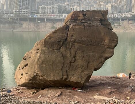 主城區(qū)“兩江四岸”治理提升嘉陵江岸線貫通工程嘉濱路大溪溝段項目位于嘉陵江南岸(渝中區(qū)),項目范圍主要為洪崖洞—黃花園大橋、黃花園大橋—曾家?guī)r大橋、曾家?guī)r大橋—渝澳大橋三段。紗帽石位于渝中區(qū)嘉濱路街靠嘉陵江江邊,為嘉陵江大橋下東側(cè)巨型巖石。該石因形似古代官帽烏紗而得名,被大眾稱之為“紗帽石”,石高13米,寬約11米,厚約9米,威風(fēng)凜凜,矗立江邊,石上鐫刻“董公死難處”五字,字徑0.6米。2002年,紗帽石董公死難處石刻被渝中區(qū)政府確定為區(qū)級文物保護(hù)單位。