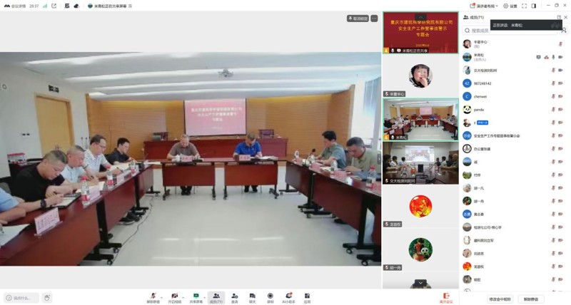 會(huì)議組織觀看《福建省泉州市欣佳酒店“3.7”坍塌事故還原解析》《長(zhǎng)沙“4.29”特別重大自建房倒塌事故調(diào)查報(bào)告講解》警示視頻,通報(bào)近期行業(yè)事故警示案例:川青鐵路尖扎黃河特大橋施工事故情況和成華區(qū)槐樹(shù)店路一在建工地塔吊坍塌事故情況,宣貫《重慶市建筑科學(xué)研究院有限公司關(guān)于加強(qiáng)質(zhì)量安全管理開(kāi)展風(fēng)險(xiǎn)隱患專項(xiàng)整治的通知》,并就汲取事故教訓(xùn)加強(qiáng)質(zhì)量安全管理提出工作要求。
