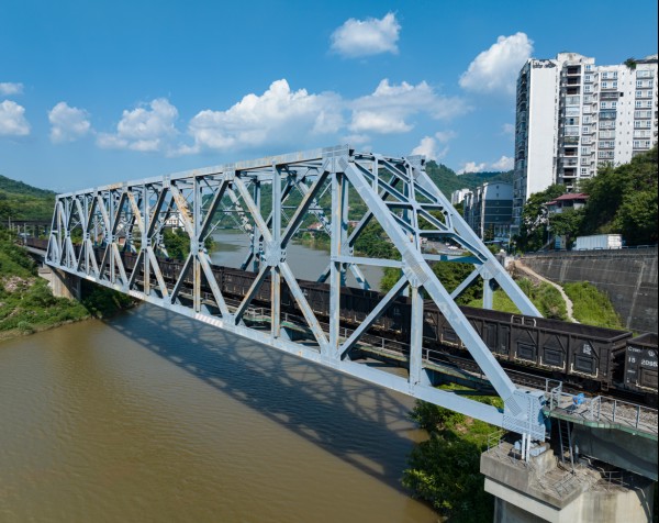 萬家咀大橋上跨綦江,主橋?yàn)橄鲁惺胶?jiǎn)支鋼桁梁結(jié)構(gòu),主橋跨徑為128米,橋面寬度為8米,主桁高度為16米。鋼桁梁由主桁、橋梁系、連接系、橋門架及橫聯(lián)組成,桿件之間采用高強(qiáng)螺栓進(jìn)行連接。